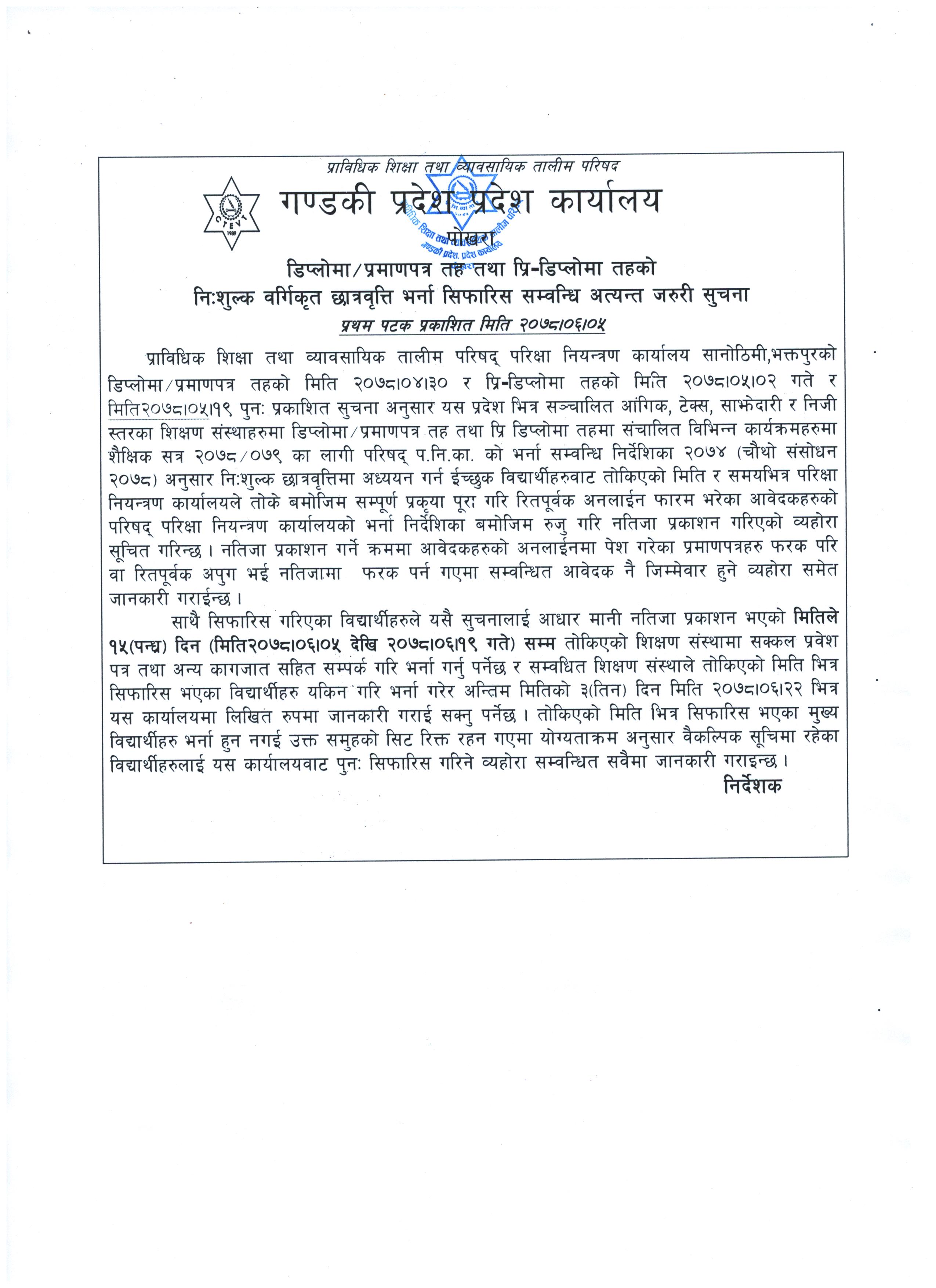 Pre-diploma Level form submission date extended Notice-2077-10-26